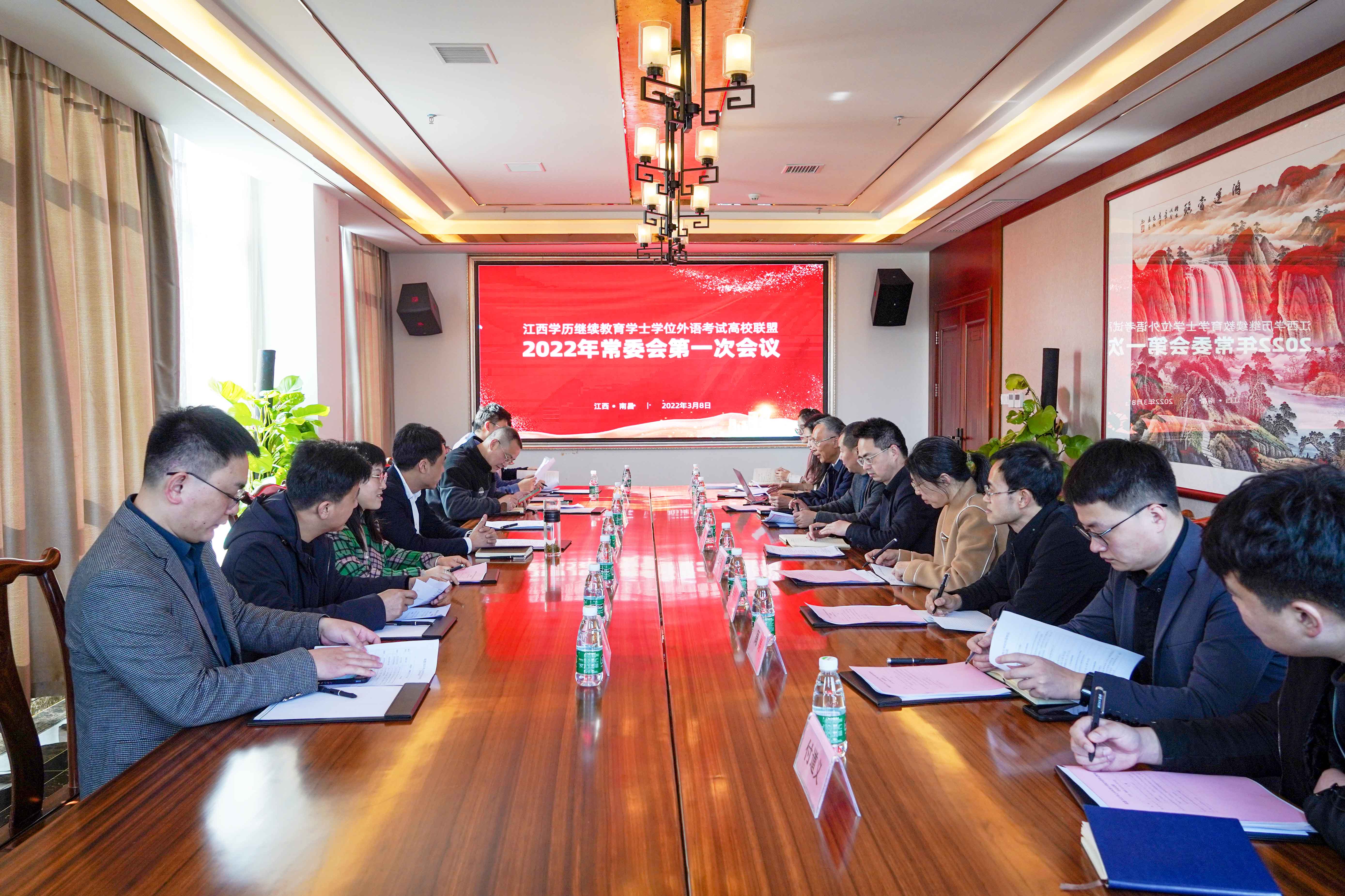 2022年3月8日,江西学历继续教育学士学位外语考试高校联盟(以下简称“联盟”)2022年常务会第一次会议在南昌召开。华东交通大学、东华理工大学、井冈山大学、江西中医药大学、赣南师范大学、南昌工程学院、新余学院等联盟理事会负责人参加会议。会议由联盟秘书长郑义寅教授主持。